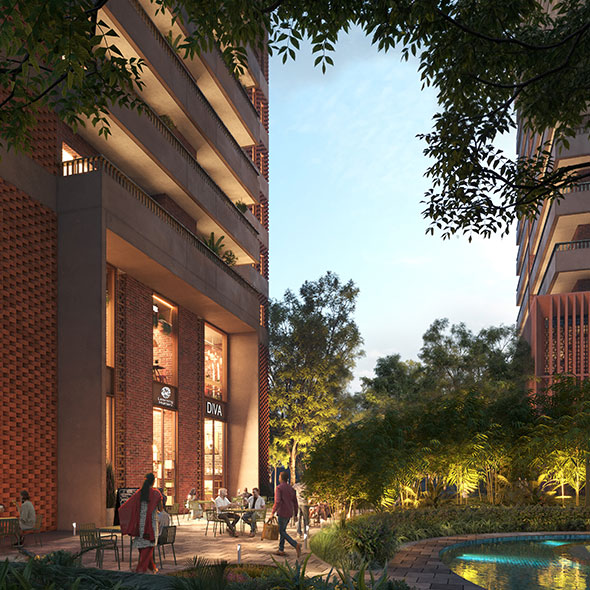 Estate 361’s design language honours the traditional while embracing the modern, through keen attention to design, materiality and local context. The use of brick and terracotta across our facades lends warmth and character, while patterns inspired by the Indian craft of jaali work enable ventilation and controlled daylighting.