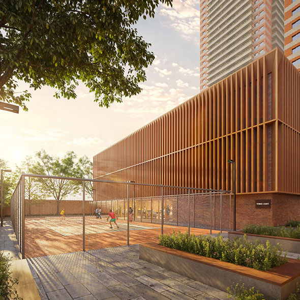 A dedicated Sports Block houses indoor and outdoor amenities, such as tennis courts, badminton courts and a cricket pitch.